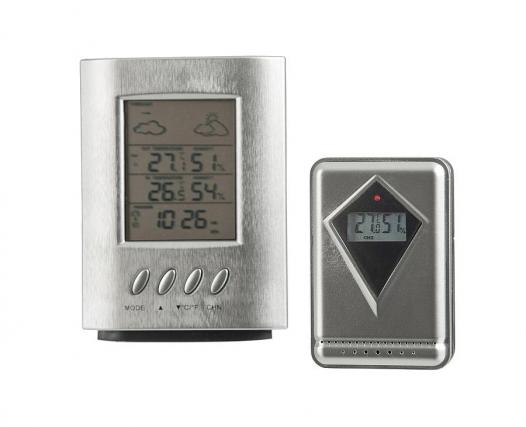 Teljes időjárás-állomás 100%-os LCD kijelzővel a belső/külső hőmérséklet, a belső/külső páratartalom és a légköri nyomás méréséhez. 5 ikonnal jeleníti meg a helyi időjárás-előrejelzést, valamint a dátumot és az időt. Ez a hőmérő egyszerre mutatja az összes adatot, emellett tartalmaz egy alapszintű állomást, amely megjeleníti az összes mérési adatot, valamint méri a belső hőmérsékletet, és egy vezeték nélküli jeladót, amely kezeli a külső hőmérsékleti adatokat. A felhasználó elhelyezheti a hőmérőt bútordarabra, vagy felszerelheti a falra. Működési távolság: 50 m (kültéren, tiszta hatómezővel). Elemmel működik (nincs mellékelve): az állomás 2 db AA elemmel, a jeladó 2 db AAA elemmel.