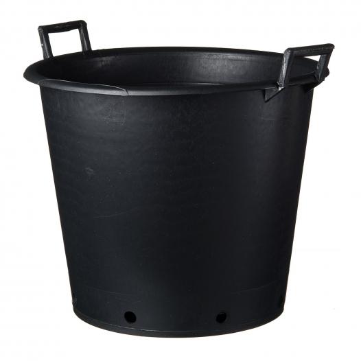 Fekete, polietilénből készült virágcserép. Lapos talppal, négy elvezető csatornával, vízelvezető nyílásokkal, valamint az egyszerű szállítás érdekében fülekkel felszerelve. A lyukak száma a cserép méretétől függően változó