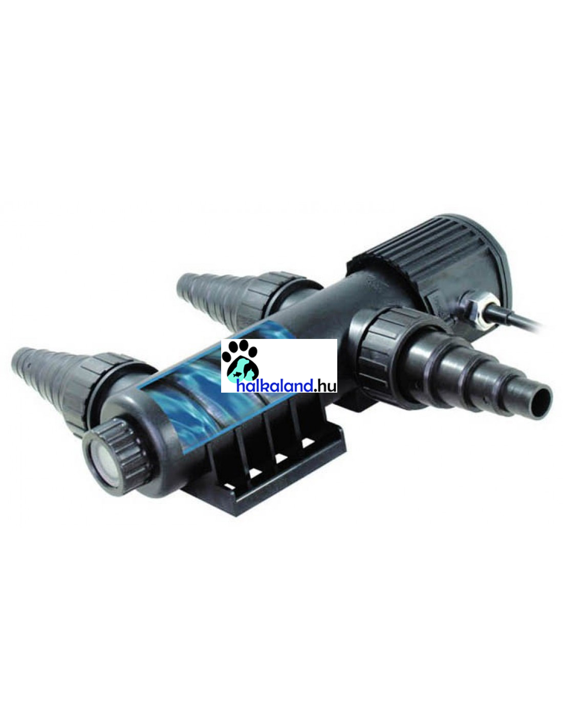 SunSun CUV-209 UV sterilizátor lámpa kerti tóhoz vagy akváriumhoz. Az UV-C sugárzással hatékonyan semlegesíti az algacsírákat és kórokozókat, sterilizálja a vizet a kerti tóban vagy akváriumban. Hasznos kiegészítő eszköz a vízszűréshez. Vízpumpára vagy szűrőrendszerre csatlakoztatható. Masszív, jól szigetelt. Különlegessége a spirális vízátvezető betét, mely növeli a hatékonyságot. Kémlelőnyílás az izzó működésének ellenőrzéséhez.